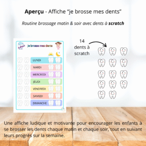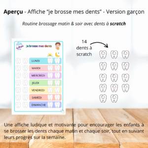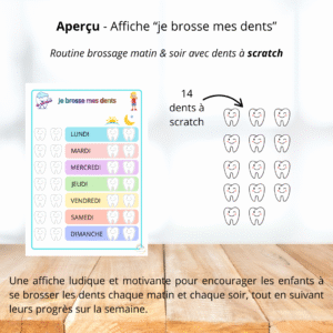 Plage de prix : 3,90 € à 11,90 € Choix des options Ce produit a plusieurs variations. Les options peuvent être choisies sur la page du produitUne affiche ludique et motivante pour encourager les enfants à se brosser les dents chaque matin et chaque soir, tout en suivant leurs progrès sur la semaine.