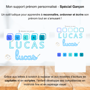 Plage de prix : 4,90 € à 10,90 € Sélectionner les options Ce produit a plusieurs variations. Les options peuvent être choisies sur la page du produitUn support personnalisé avec le prénom de votre enfant, idéal pour apprendre les lettres tout en décorant sa chambre ou son espace d’apprentissage. Ludique, éducatif et sur-mesure !