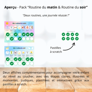 Plage de prix : 5,90 € à 11,90 € Choix des options Ce produit a plusieurs variations. Les options peuvent être choisies sur la page du produitDeux affiches complémentaires pour accompagner votre enfant du réveil au coucher, avec des étapes claires, illustrées et motivantes. Ludiques, plastifiées et interactives grâce aux pastilles à scratch.