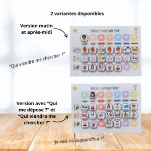 24,90 € Choix des options Ce produit a plusieurs variations. Les options peuvent être choisies sur la page du produitSemainier visuel et personnalisable pour aider l’enfant à organiser sa semaine : 3 modèles au choix, plus de 110 vignettes à scratch (lieux, activités, famille, rendez-vous…), plusieurs personnages ou photo personnelle, et une trousse assortie pour tout ranger.