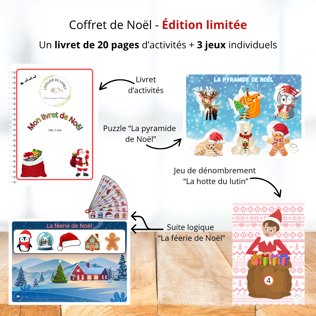 Plongez vos enfants dans la magie de Noël avec ce coffret ludique et éducatif imaginé pour éveiller leur curiosité tout en s’amusant !