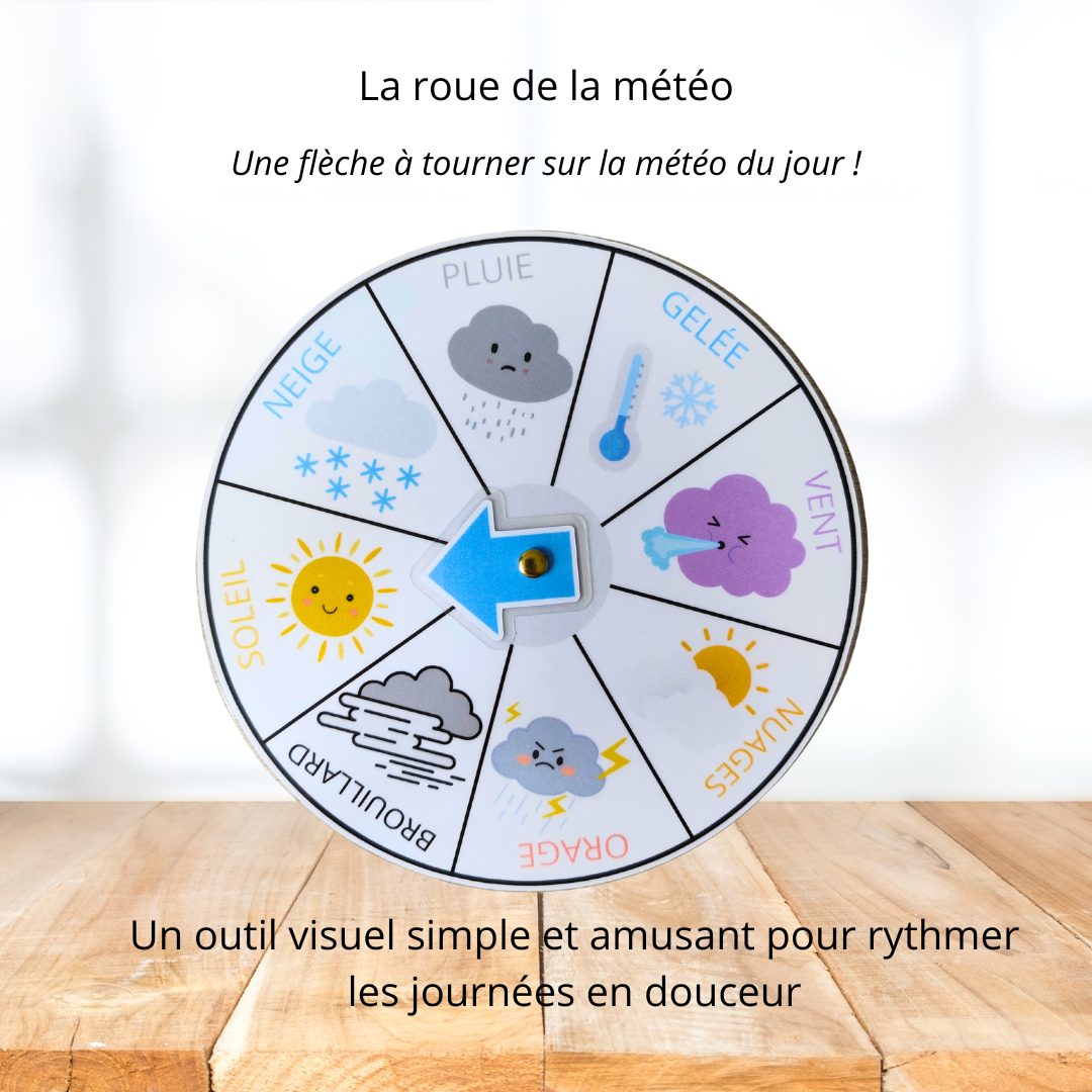 Un outil simple et coloré pour apprendre à observer, nommer et indiquer la météo du jour !