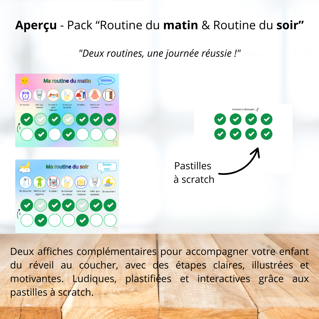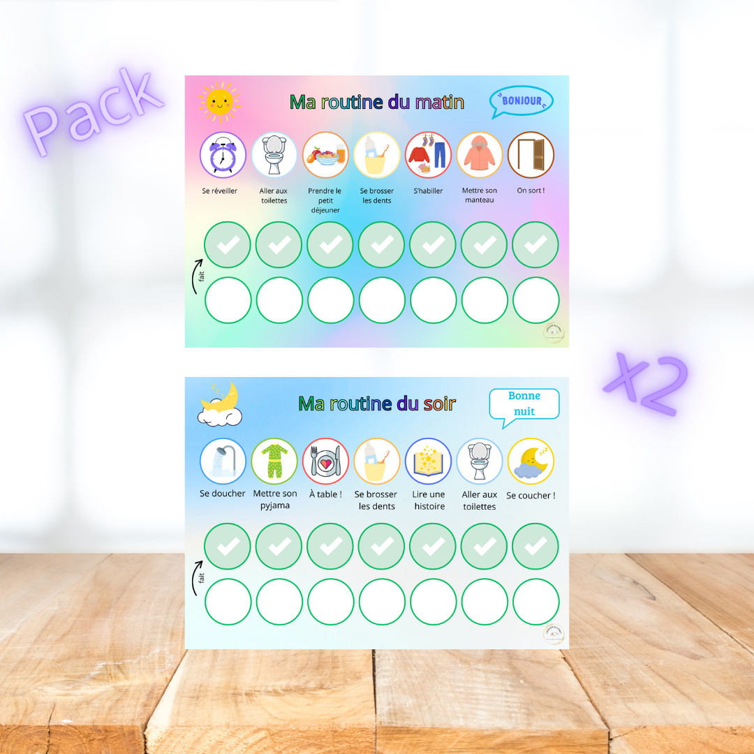 Avec le pack « Routine du matin & Routine du soir », les journées de votre enfant deviennent plus fluides, organisées et agréables.