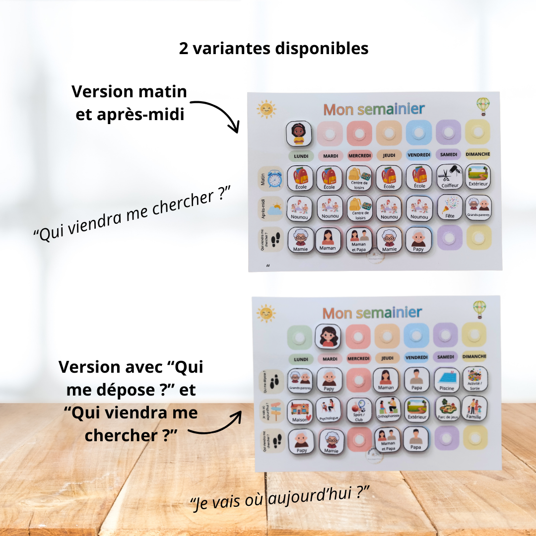 👉 Trois versions du semainier sont disponibles selon les besoins des familles :